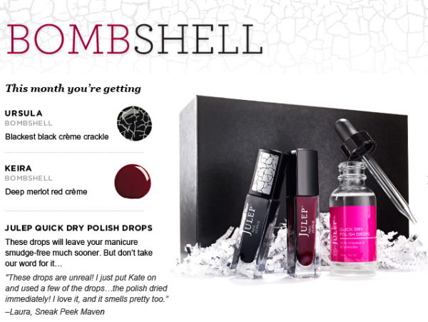 I always love seeing the new nail polishes each month from Julep! Which style are you going with this month? I'm usually Classic with a Twist, but I decided to go with Bombshell. I'm also very curious about these Quick Dry Polish Drops!