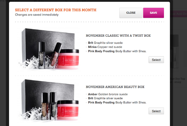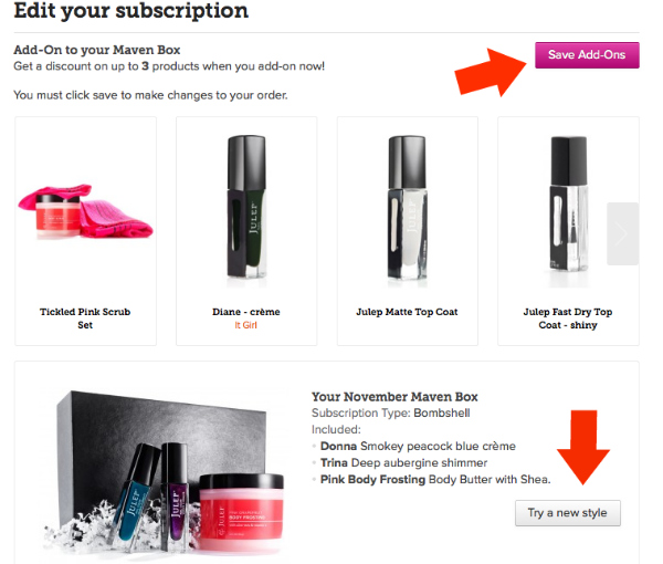 Update: This is the first month with Julep's new site, so the Maven box selection is a little different. Here are some screen shots to show how to select your Maven box: