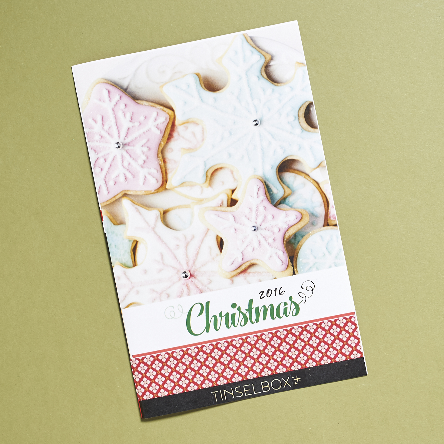 This little booklet lists out all the products featured in the box, plus some other inspiring content. There's a feature on one of their makers, a reminder that TinselBox makes a great gift, and on the back...