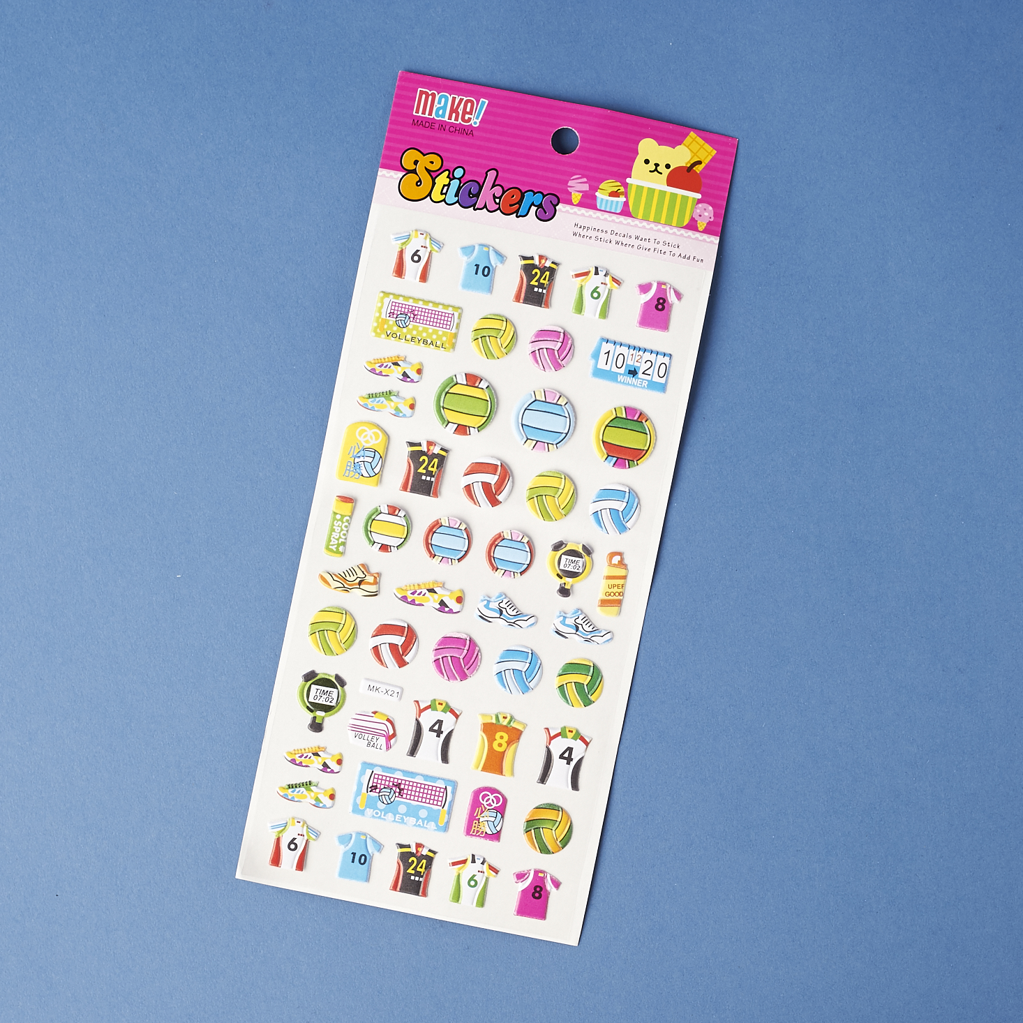 I think all of these stickers are focused on volleyball, which is cool. Football? Soccer? I've seen stickers for those before, but not volleyball! The shoes are my favorite. I love the colors and the sporty designs!