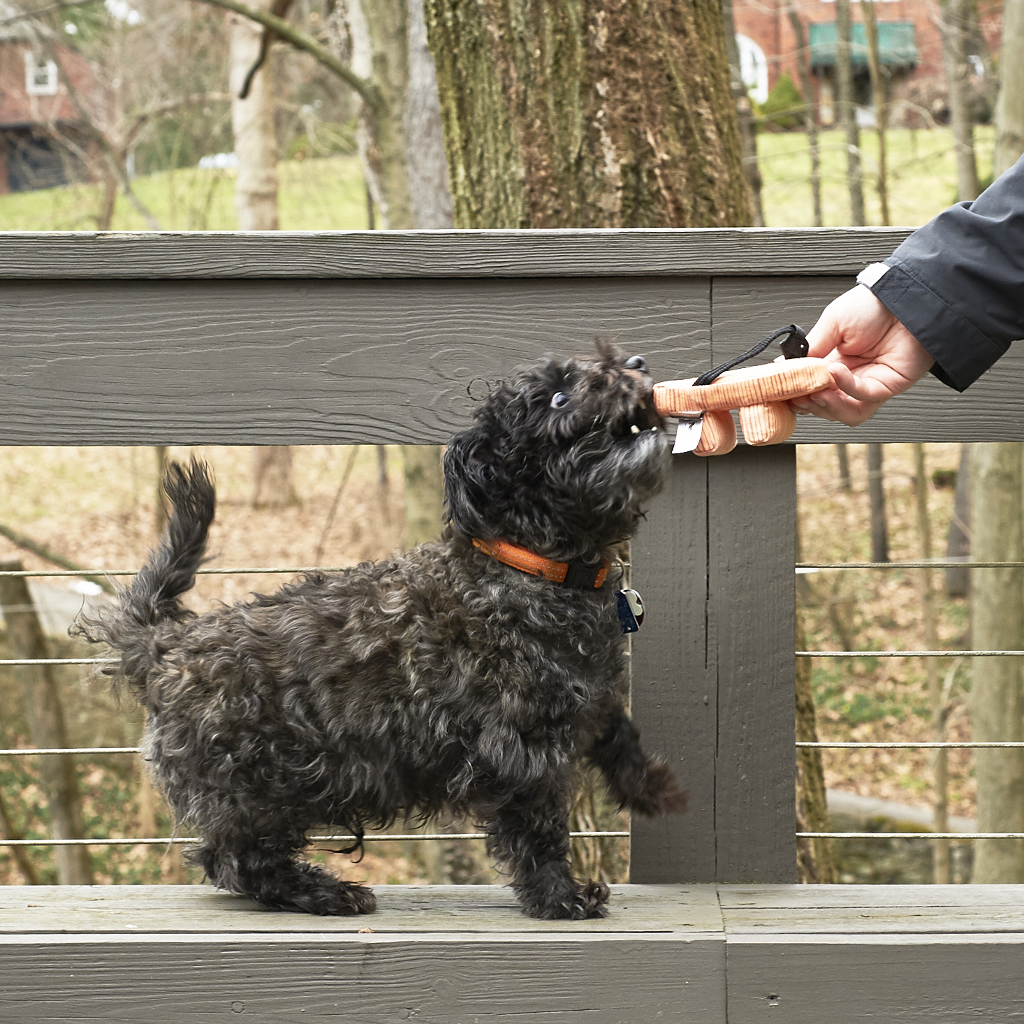 Our geta shoe toy is for pooches ready to put uncomfortable footwear in its place! Ready for a history lesson? It's inspired by the traditional getas of feudal Japan, which designed to elevate the foot in an effort avoid ruining kimonos in puddles. They were probably designed for folks who didn't need arch support (just our uneducated guess). We've improved upon this classic by filling it with crinkle and a squeaker, creating multiple sources of sound to keep your dog engaged. The tough ballistic nylon strap is perfect for pups who love to tug or chew. Easy to grip and fun to squeak, it's it ideal for a game of fetch. We're going to be honest: they're also great for pretending that your hands are tiny feet.