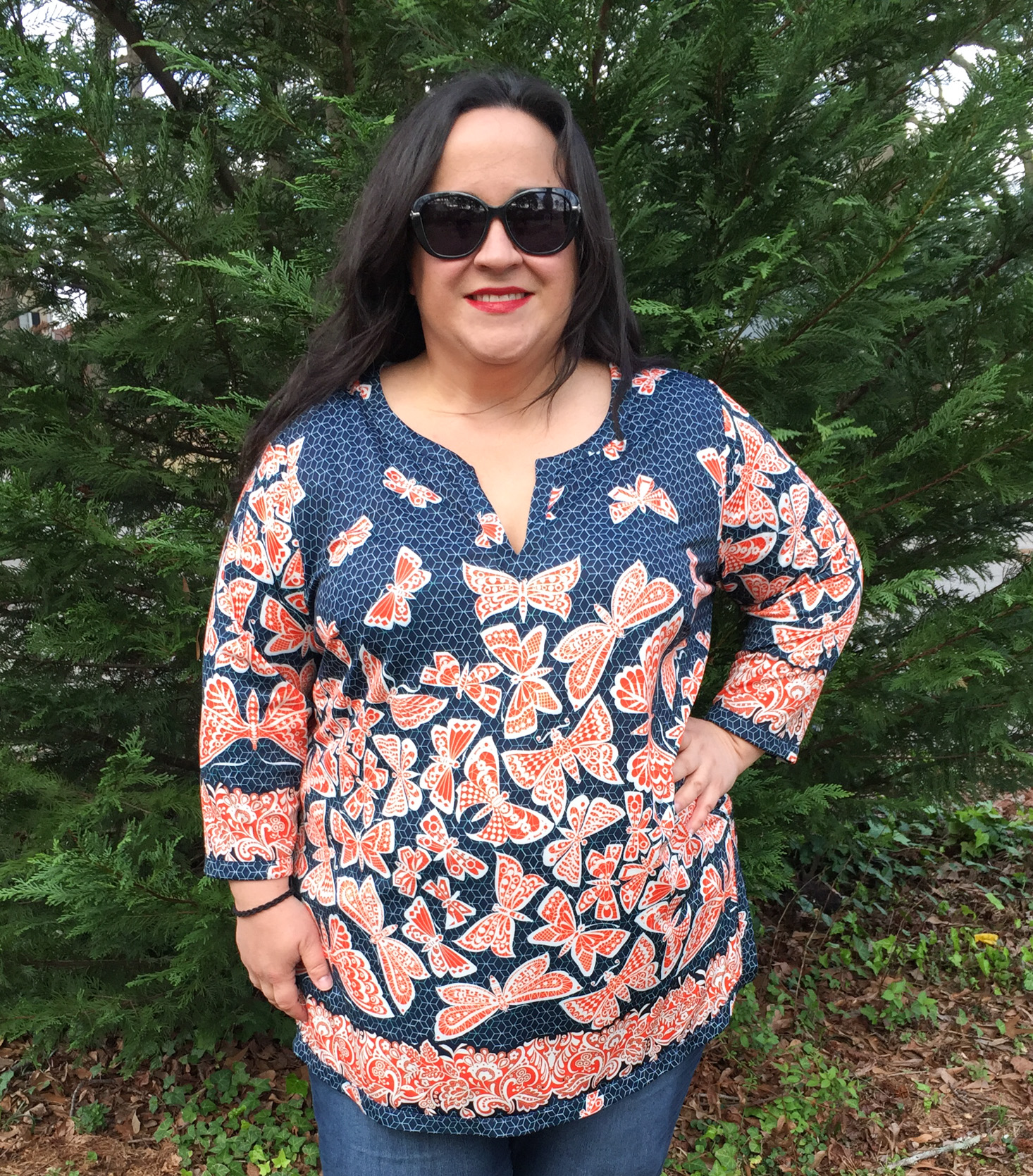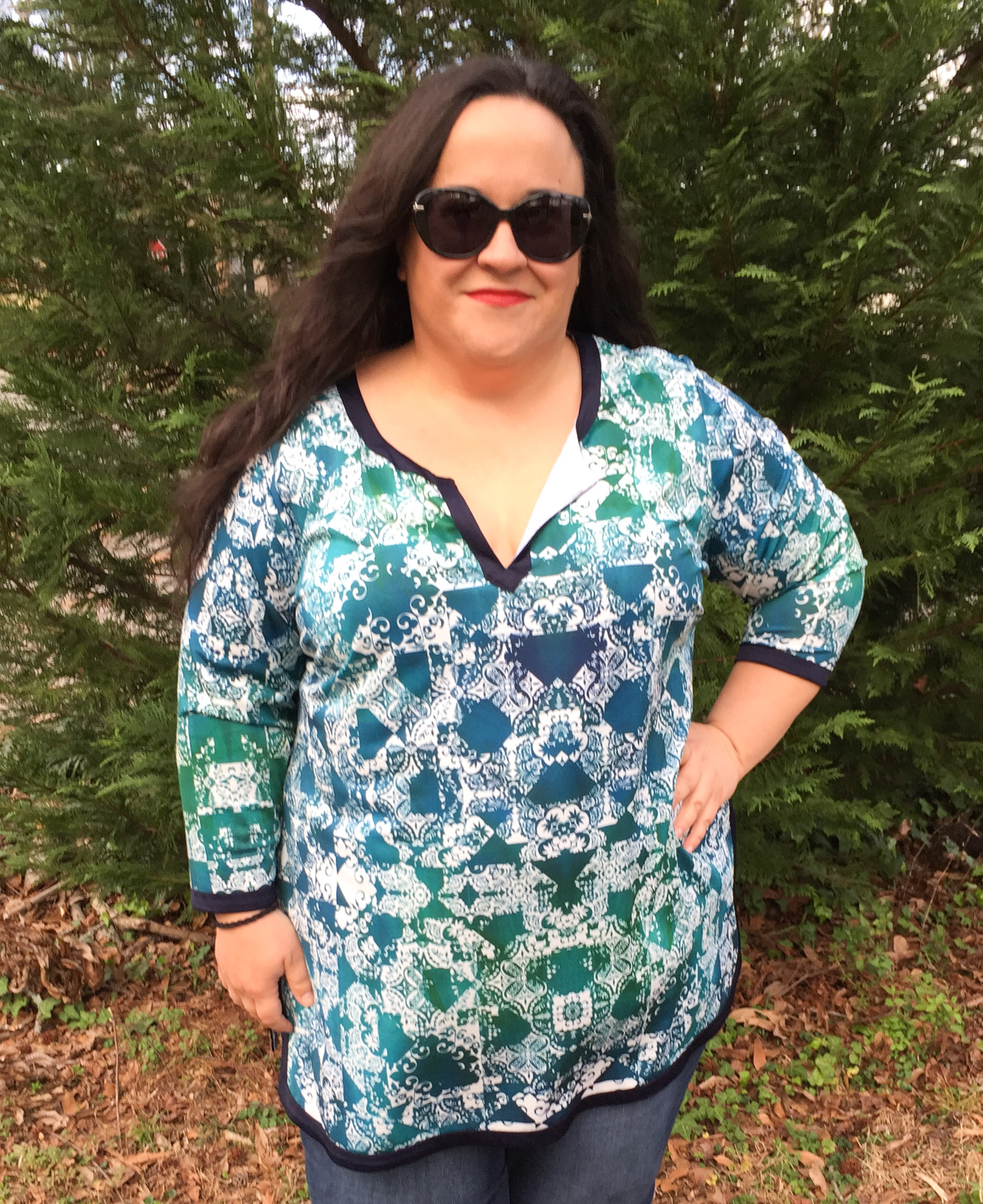 Aside from the print and trim, this tunic was identical to the previous one! The material, fit and cut were all the same! I think this one actually looked a little better on me, I guess because of the colors.