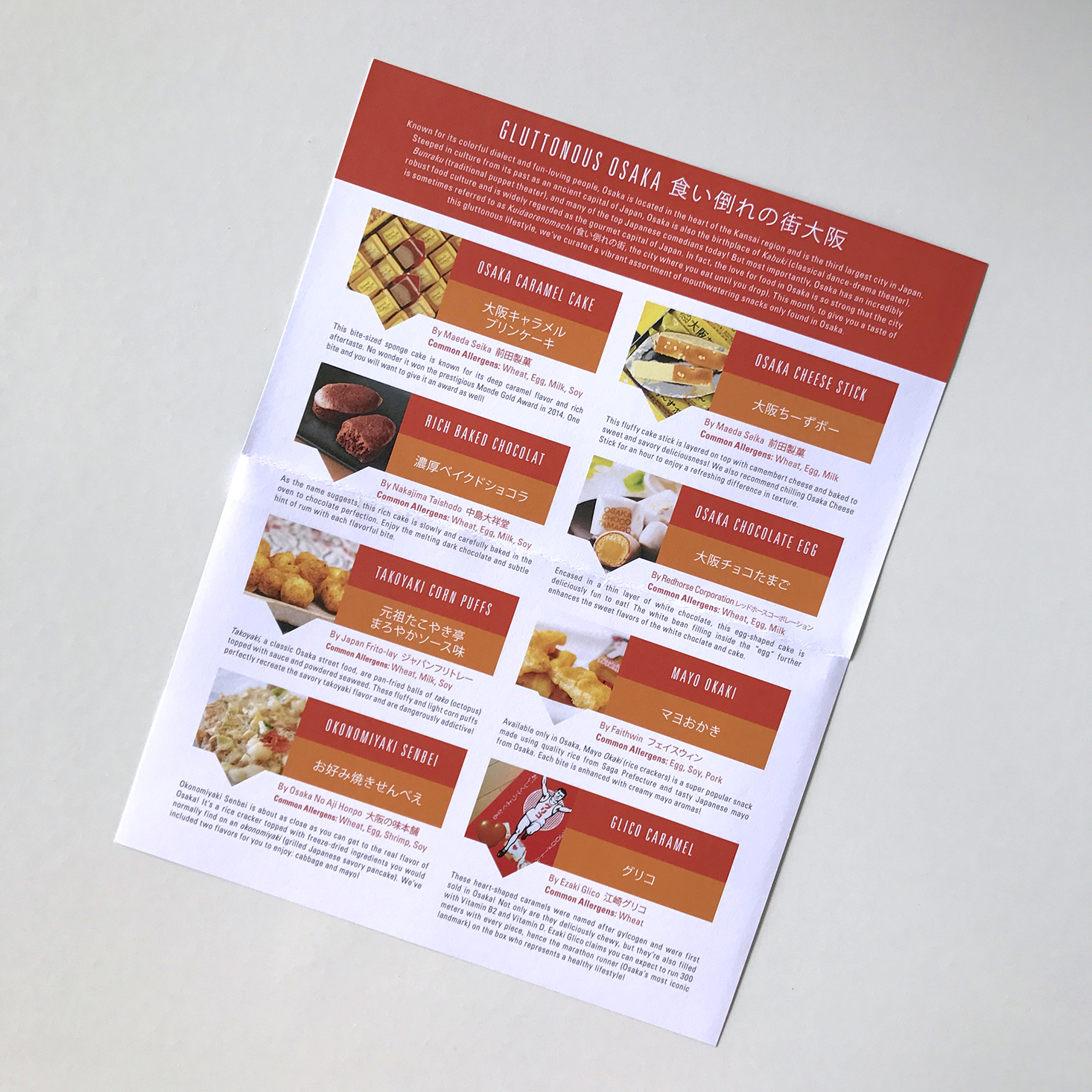 April's theme is Gluttonous Osaka, featuring an assortment of snacks found only in Osaka, Japan.