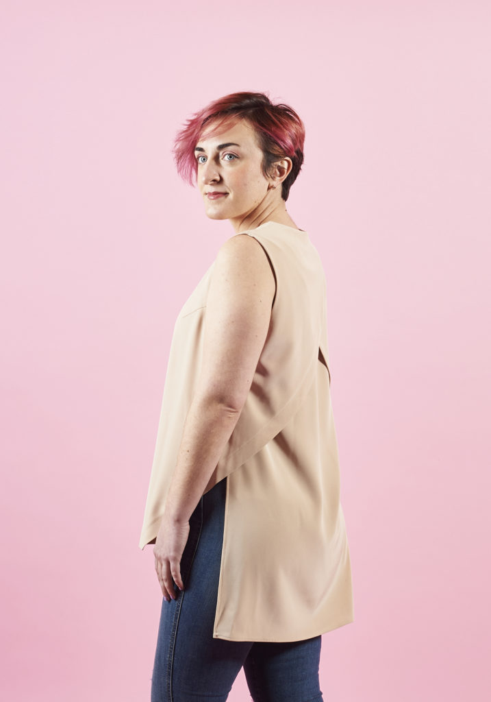 The best part of this top is the back, which has this unique layered detail. I love things like this—the angles are sharp and clean, but the sandy color and delicate fabric give it romance and softness.