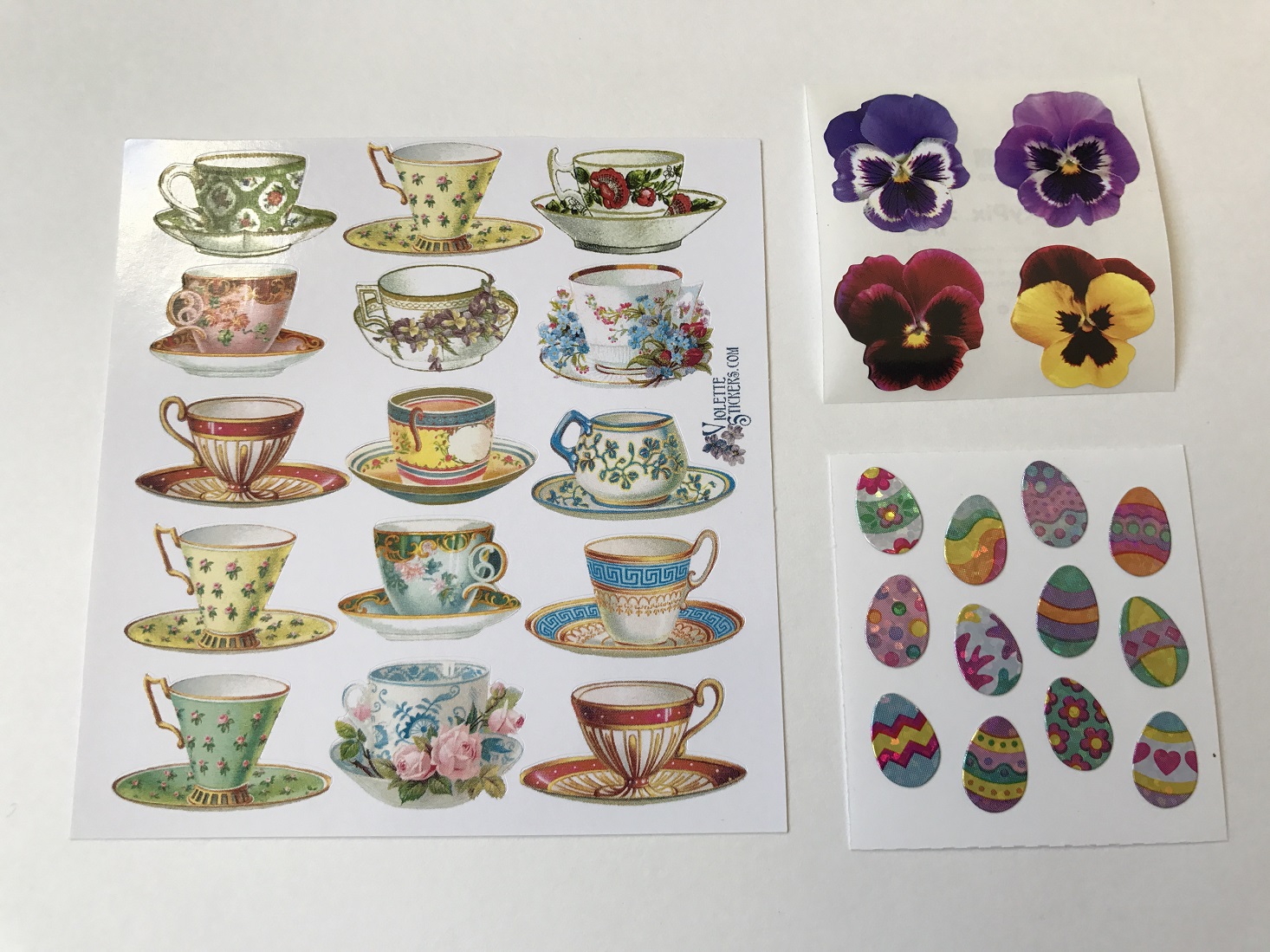 I thought Pipsticks did a nice job including some spring themed stickers. The Easter eggs were adorable. The pansies were colorful and the teacups were so intricately decorated I couldn’t get over it. I might save these to use on envelopes when I correspond with my tea-loving aunt.