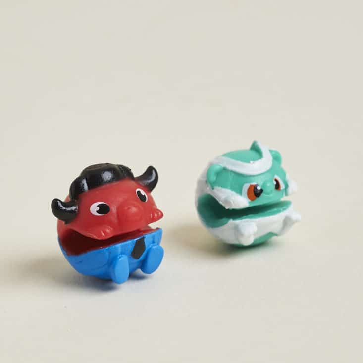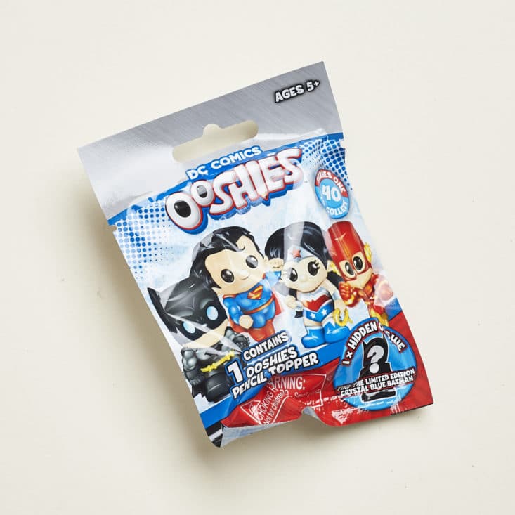 I got the John Stewart Green Lantern character. There are really little - like 1 inch tall, little - and squishy. There is also a place on the bottom to use it as a pencil topper.