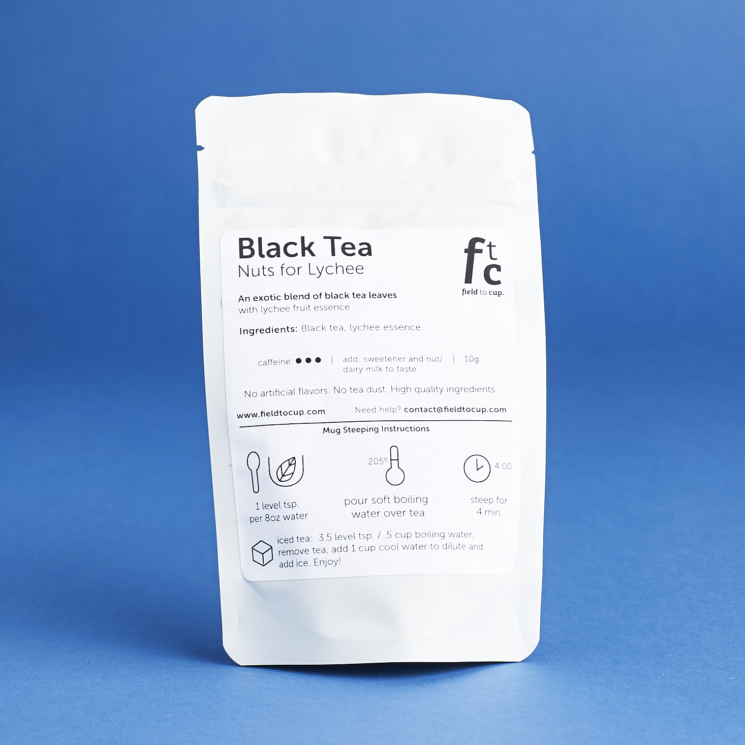 Each tea comes in a resealable pouch that has the tea description printed on the outside. The pouch shows the specific steeping instructions for each tea blend and it includes cold brew instructions for each blend!