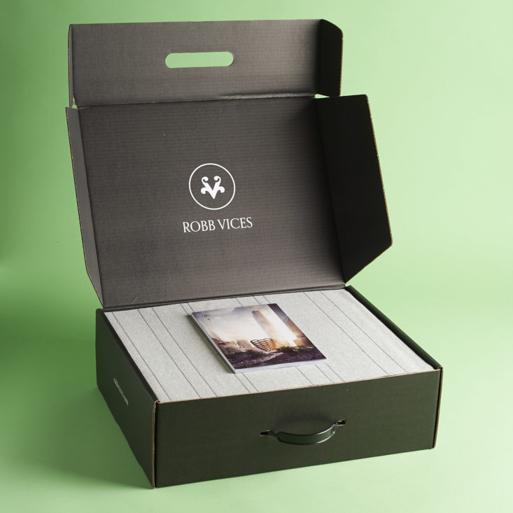 With each shipment, Robb Vices sends out a glossy booklet that outlines the products and curation story of each box.