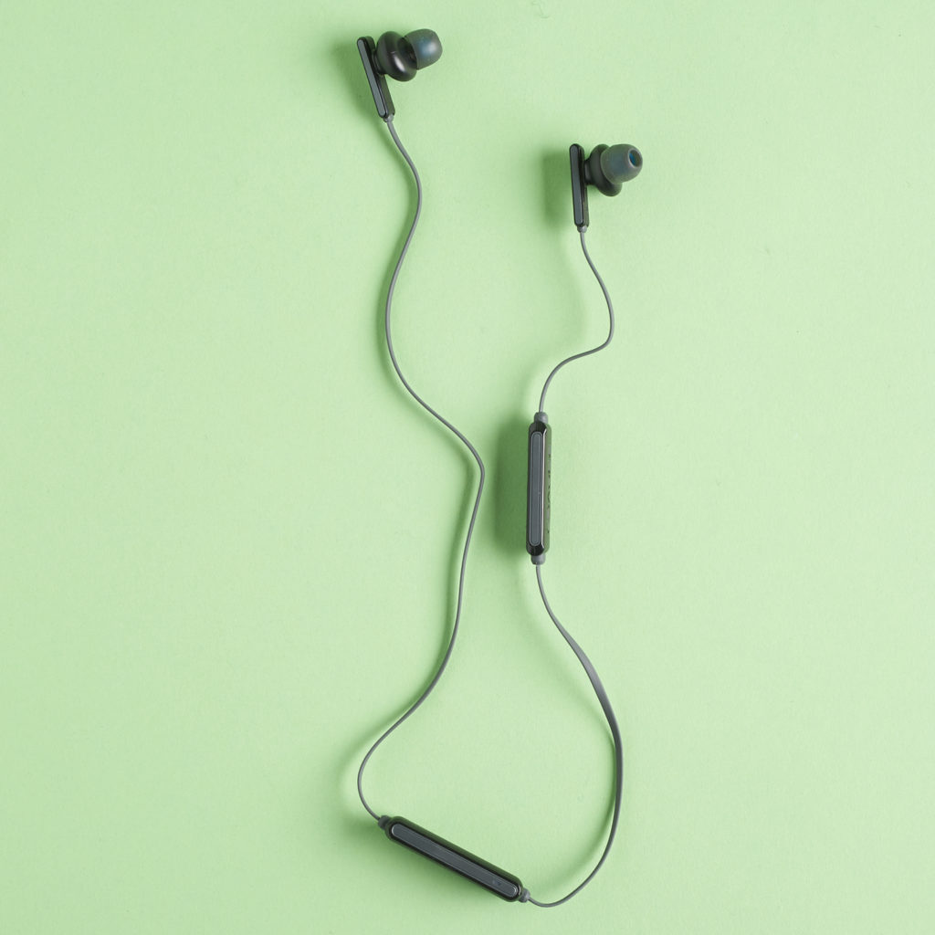 These wireless earbuds loop behind your neck with a tangle free cable: