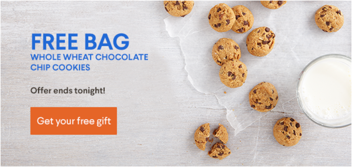 Today only, get 25% off plus a FREE bag of Whole Wheat Chocolate Chip Cookies with your first order, no coupon code required, just use this link! (Shipping is free on orders over $25.)