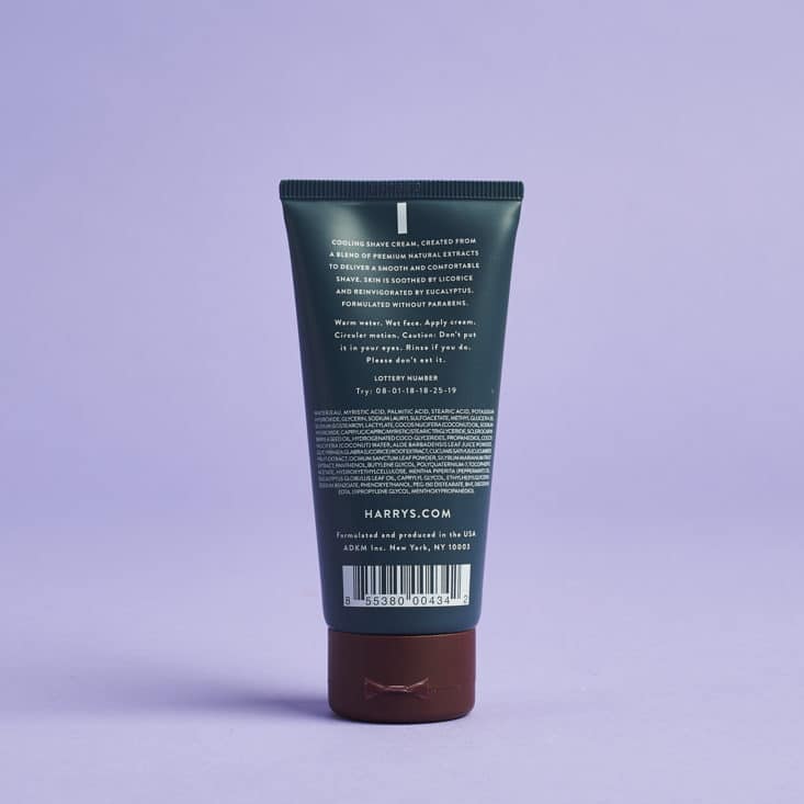 Harry's shaving cream features natural oils and extracts and doesn't include parabens.