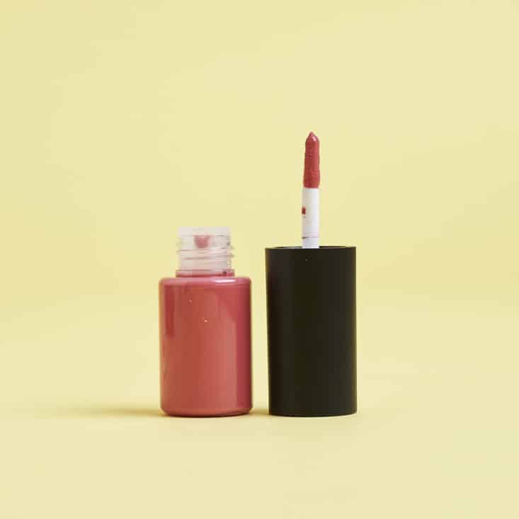 This lip paint has a matte finish, great pigment, and INCREDIBLE staying power! (Swatched in lower photo.)