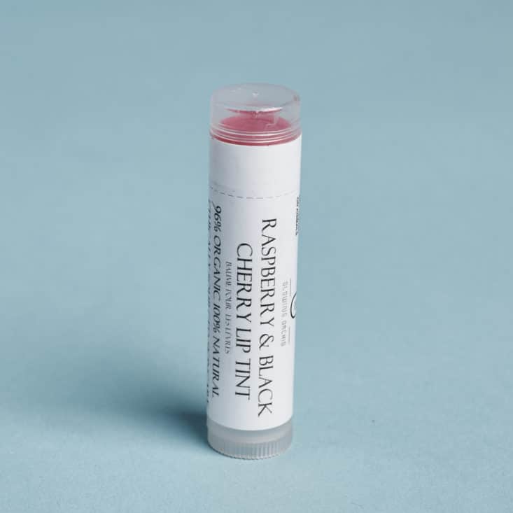 The info card suggests that this lip balm was intended to be a "Strawberry & Rose Hip" scent, but I don't mind getting this fruity, cherry version. I love using natural products wherever possible, so this product is right up my alley. The formula didn't leave much of a tint on my lips, but it was moisturizing and smelled delicious. If you're looking for a natural, cruelty-free alternative to drug store fruity lip balms, this is a great pick.