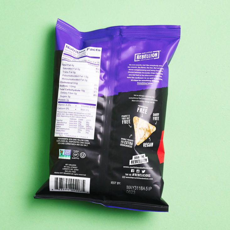 Wow were these chips good! They're light, crispy potato chips with just enough heft to give a good crunch. The flavor packs a pop—that lime has a real zip to it! My favorite thing is that these are made with avocado oil. It doesn't impact the flavor in any way, but it feels better than something fried in a less healthy oil.