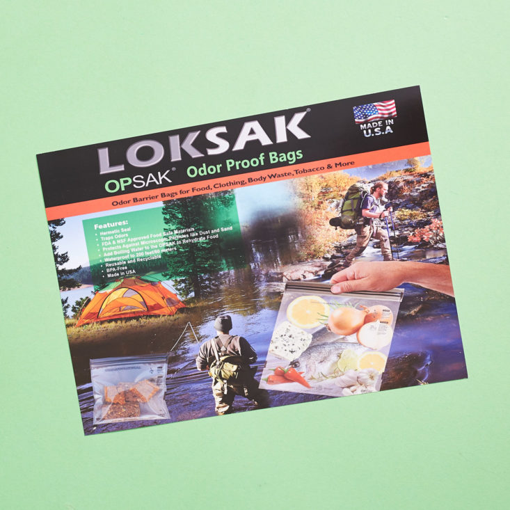 I’ve actually had several Loksak products over the years, and was excited to see these at the bottom of my box! The Opsak differs from the Aloksak in that it has an FDA approved film that allows the bag to be odor proof - a pretty exciting feature for a lot of backpackers and campers. I was a little amazed to see that it’ll hold boiling water as well. You could pre-pack dehydrated meals and use these as your cookware.. Genius! They are BPA free and waterproof to 200 feet also. I haven’t tested the odor blocking ability of these Opsaks just yet, but I’m going to Idaho for the eclipse and doing some backpacking in the Sawtooth range, and these are both coming with me! Included on the back of the info card is a recipe for some delicious camp chicken.. Long-time Cairn subscribers may notice some callbacks to past boxes 🙂