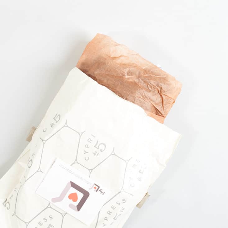 Something included in every box is this postcard which gives you more information on how the packing materials used for this subscription are eco-friendly and from recycled materials.