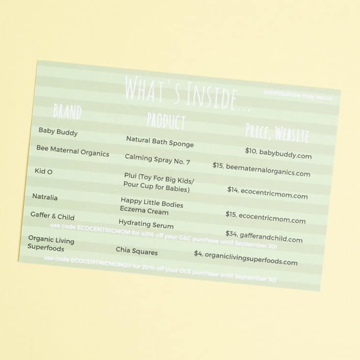 Love that Ecocentric Mom has gone back to including the detailed product info in the box!