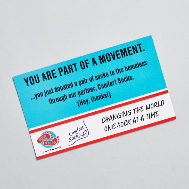 Here's the information that came inside the Foot Steps envelope. I always like when subscriptions have a charitable aspect to them.