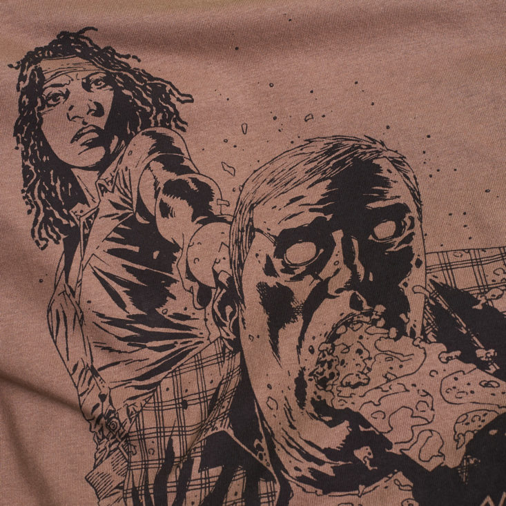 The final item is a second shirt featuring a blood-spatter backed zombie.