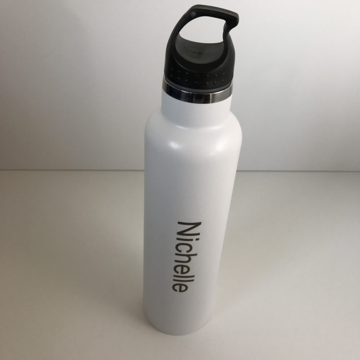 OMG, this was a treat to see my name inscribed on the side of the water bottle and this insulated water bottle is huge! It intends to keep liquids cold for 24 hours and liquids hot for 8 hours.