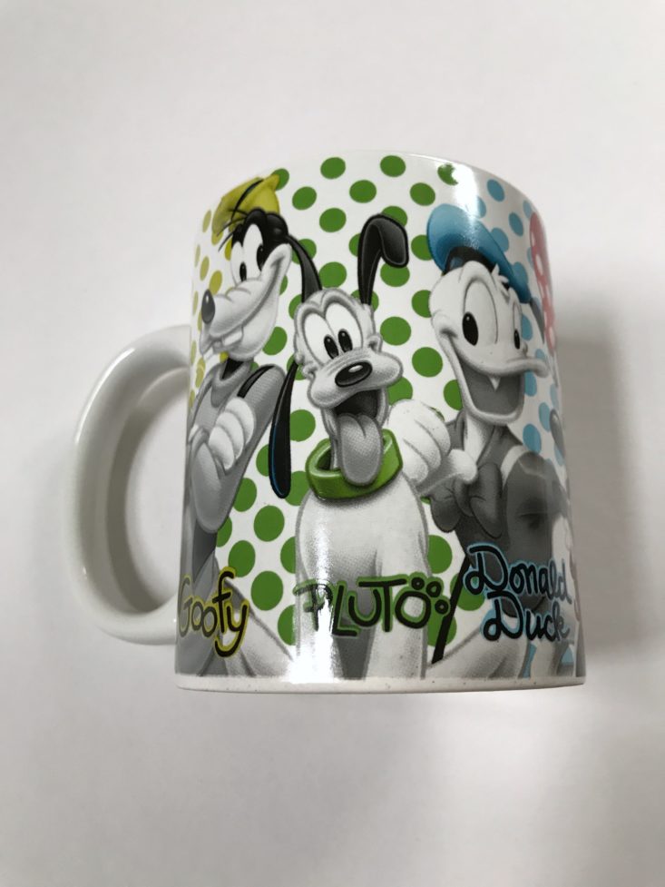 What a cute Mickey and Friends mug! This mug features Mickey, Minnie, Donald, Daisy, Goofy, and Pluto. I like the rainbow colored polka dot background design and how each character’s name is featured. This will definitely come in handy this fall when I start drinking more hot tea and soups.