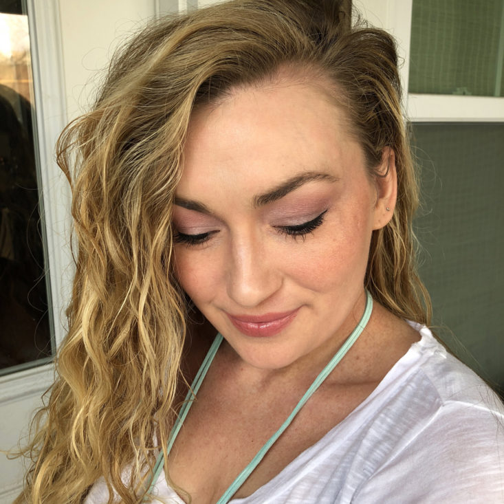 Here is a look created with the palette. I went light on the eyeshadows and used the lightest blush, so this look could definitely be amped up if you prefer a bolder look. The finishing powder goes on translucent even though it looks very white in my swatches.
