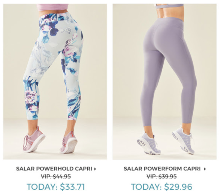 Today is the last day VIP Fabletics members get 25% off select capri and crop leggings! No coupon code necessary, the discount will be applied automatically.