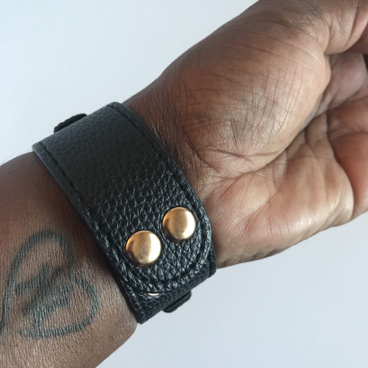 This black and gold snap cuff bracelet has “BGM” on the front meaning “Black Girl Magic.” The bracelet seems a little edgy for me, and I’m not into cuff bracelets, I may pass on to my niece. Subscribers will receive one of six colors.