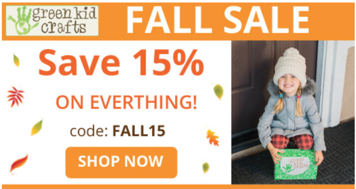 Now through 10/22, use coupon code FALL15 to save 15% off any length Green Kids Crafts subscription!