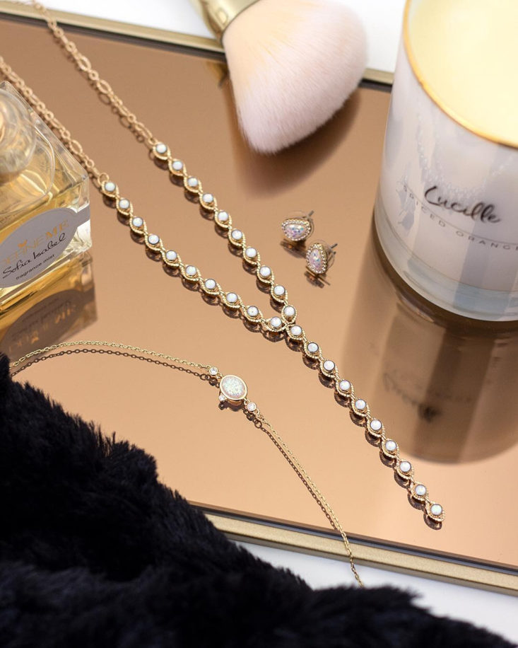 face allows for more dramatic makeup (hello glitter eyeshadow) and shows off your swoon-worthy opal earrings. A Your Bijoux Box exclusive.