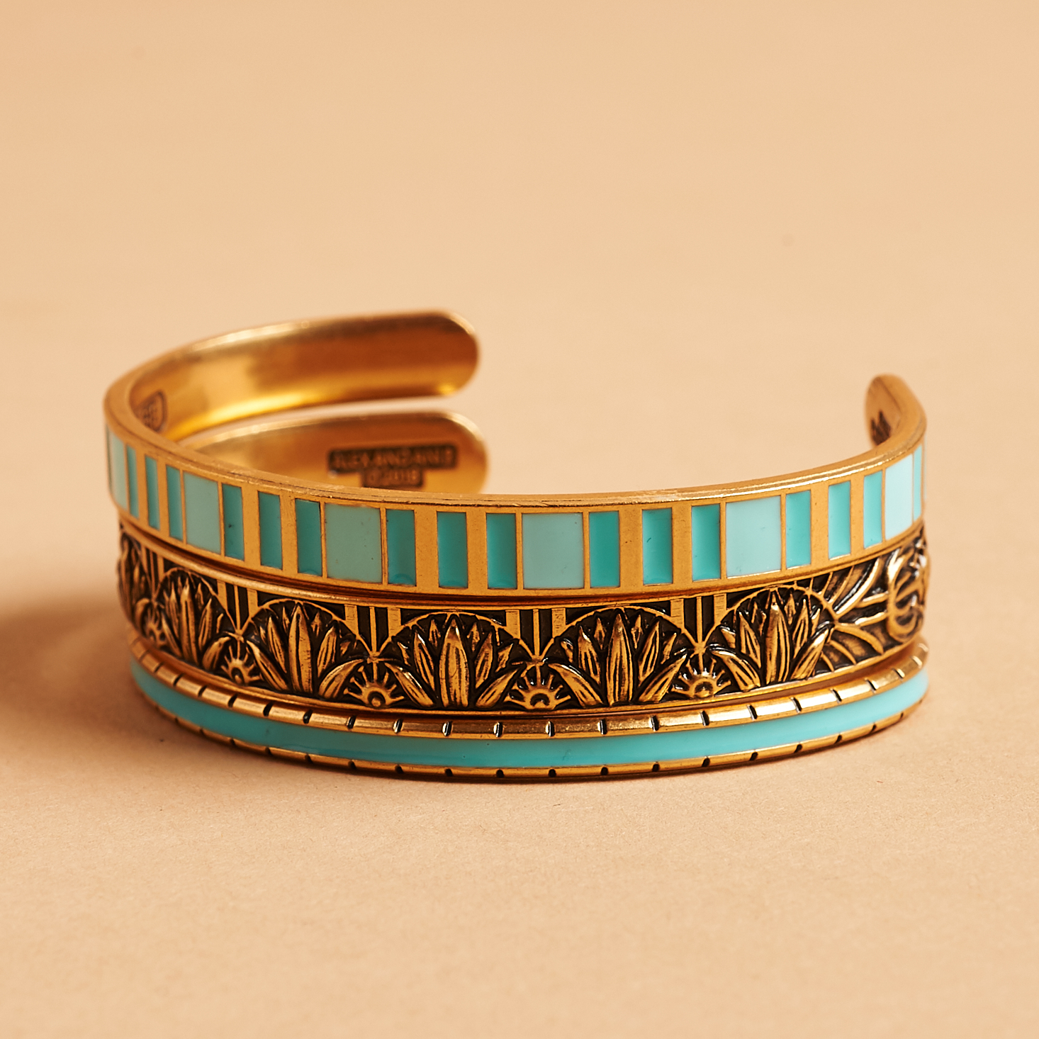 These Egyptian-inspired stacking cuffs are really beautiful! They are also incredibly sturdy/weighty and are made in the US. Winning! I was a lot more in love with these than I expected and I think it is because they lend themselves so easily to mixing and matching with my other favorite pieces. I actually wore the two enameled cuffs out stacked with some of my vintage Southwestern silver cuffs and it transformed into a very Americana vibe. These miiiight be keepers!