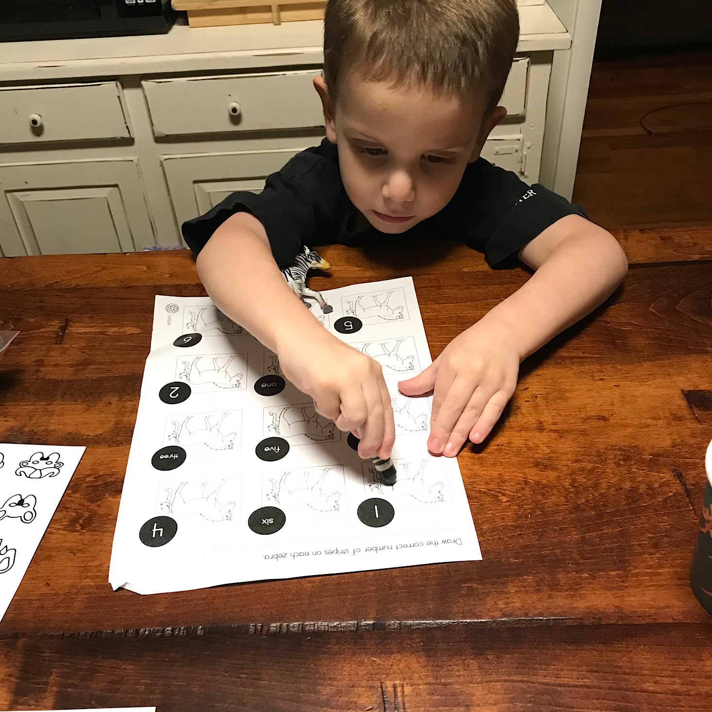 Once we sorted through all of our zebra goodies, we read some zebra facts. I thought this was a cute little sheet and the pictures made it easy for my son to follow along with. Since it is smaller in size, he can store this in his lunchbox as well. I love being able to keep it all in one place! Less clutter and built-in organization is a nice bonus!