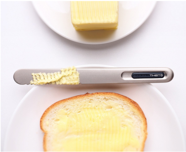 SpreadTHAT! presents an innovative butter knife with a heated serrated edge designed to curl up and soften cold butter easily.