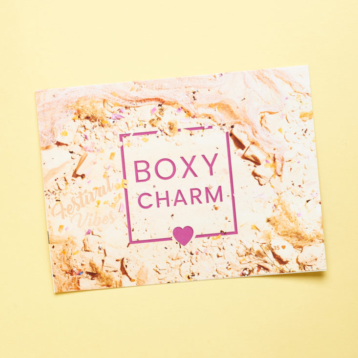 Each box comes with a card detailing the items included and often listing upcoming sales and promotions. It looks like my assortment this month is box #35.