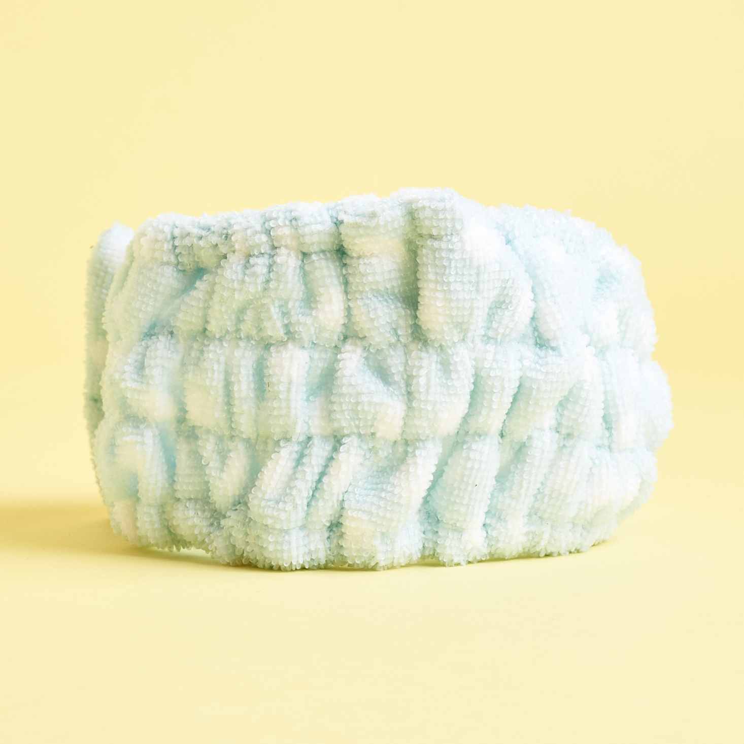 Although the only headband I could find online has a different name, it looks to be the same style in pink instead of blue. Perhaps this one has a bit of a wider band though. At any rate, I was pleased to see this baby blue polka dot number in the egg since I always need headbands to keep my hair back when washing my face. The soft microfiber makes it super comfortable while the wide band keeps all hair out of my face. The only issue I have is that since I have fine hair, this does like to slowly slip off of my head unless I have it over my ears and at the front of my forehead (which works). The headband is machine washable, so I can toss it in with my laundry after a few uses to make sure it stays clean.