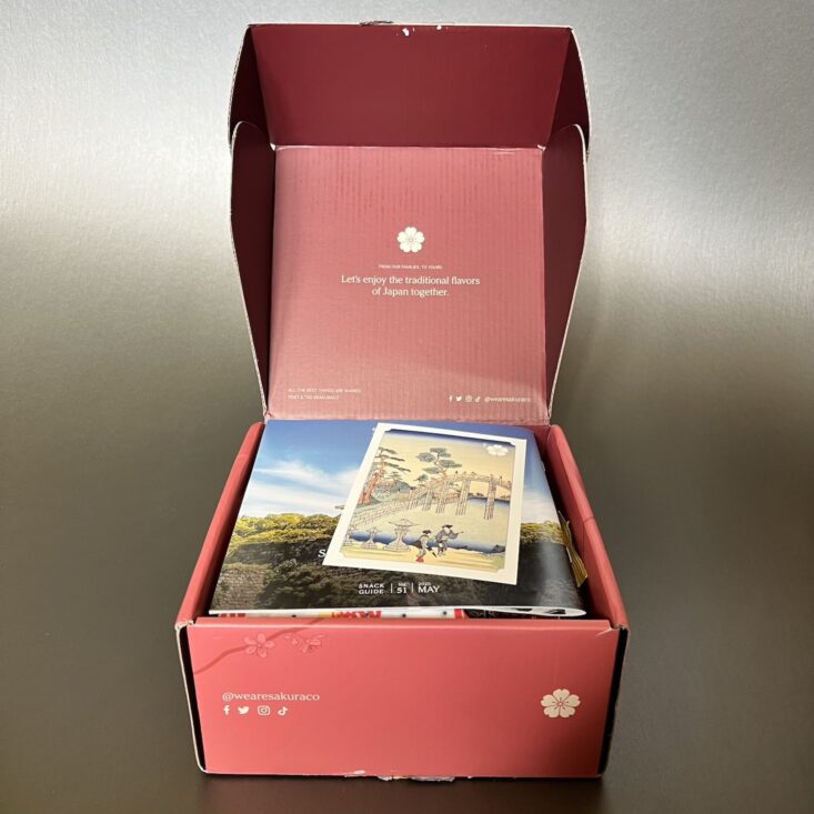 May's box is all about Savoring Osaka. It was not surprising that Sakuraco included a gorgeous booklet, since its packaging is so impressive. This booklet describes each snack and lists if it contains any common allergy. It also includes articles about crafts, traditions, and destinations in Osaka.