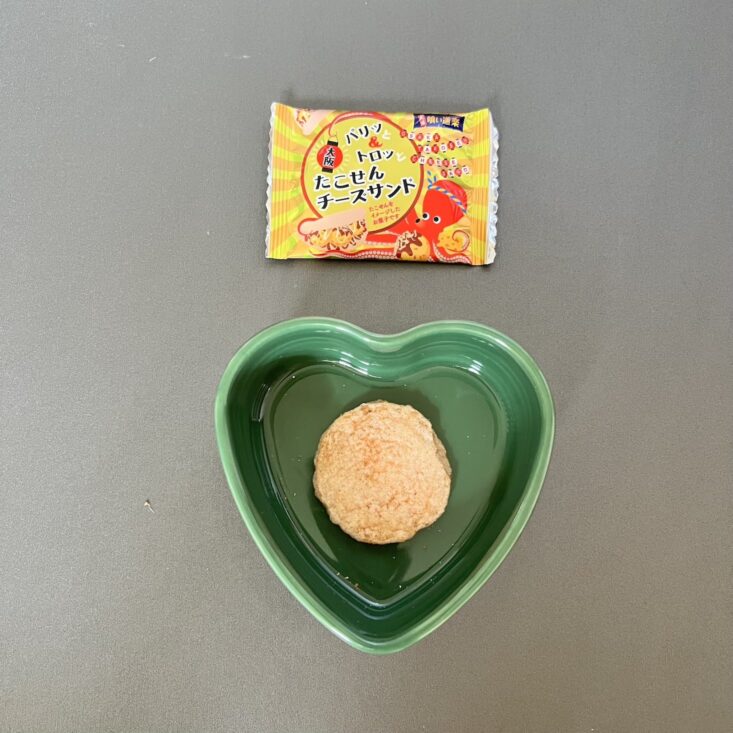 I treaded lightly with this one, haha. Its description, "Osaka's popular takoyaki, a savory ball-shaped snack made of wheat flour batter with octopus, with two crust crackers sandwiching a layer of cheese," sounded menacing. Still, I sucked up my hesitation and dove right in with a big bite. The first bite was a total shock of flavor, a skinny layer of rich cheese surrounded by two crackers with a bold seafood flavor. I am glad I had the opportunity to try it, but I wouldn't purchase this snack.