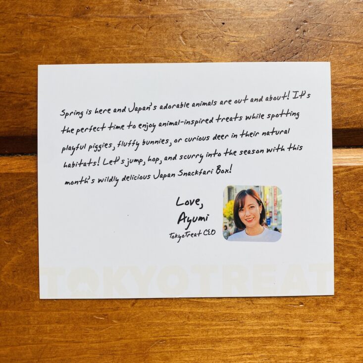 To welcome us to TokyoTreat, we first received a cute polaroid type picture with a note from Ayumi, the TokyoTreat CEO. A sweet addition, I am already feeling like family! ❤️