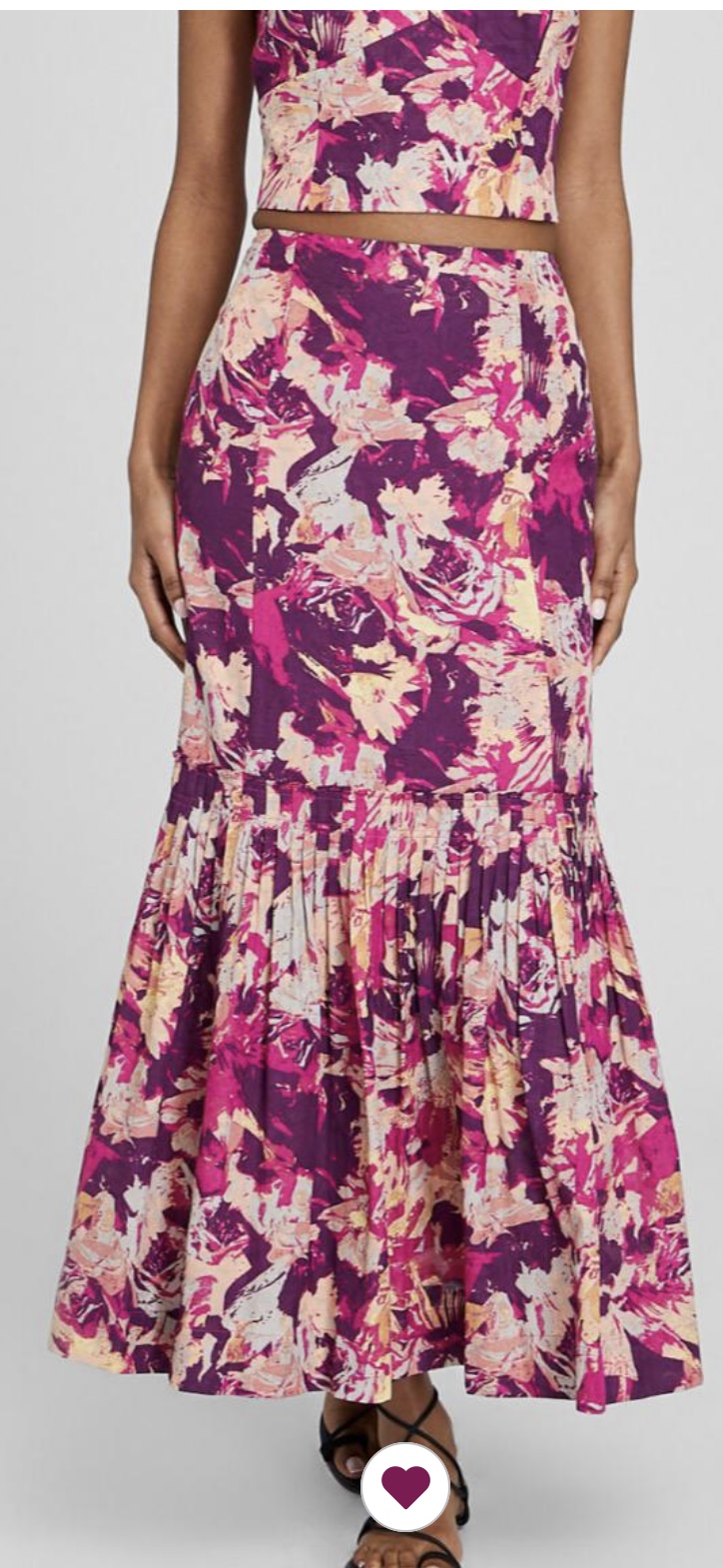French Connection Floral Paneled Crop Top, Retail Value $128, Armoire $96, French Connection Floral Printed Flounce Maxi Skirt, Retail Value $248, Armoire $186