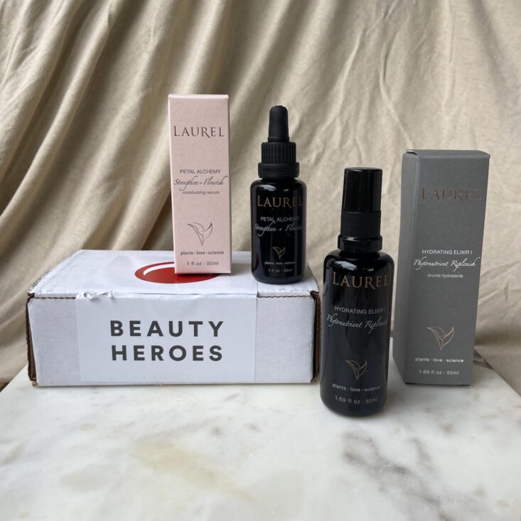 The June delivery from Beauty Heroes is a burst of garden freshness with big time aromatherapy and plant healing power. They introduced us to the magic with Petal Alchemy and Hydrating Elixir I, but I sincerely hope we'll see more of the Laurel Skin line in future boxes. This box costs $58.95. Our two products add up to $154. A great value like always!