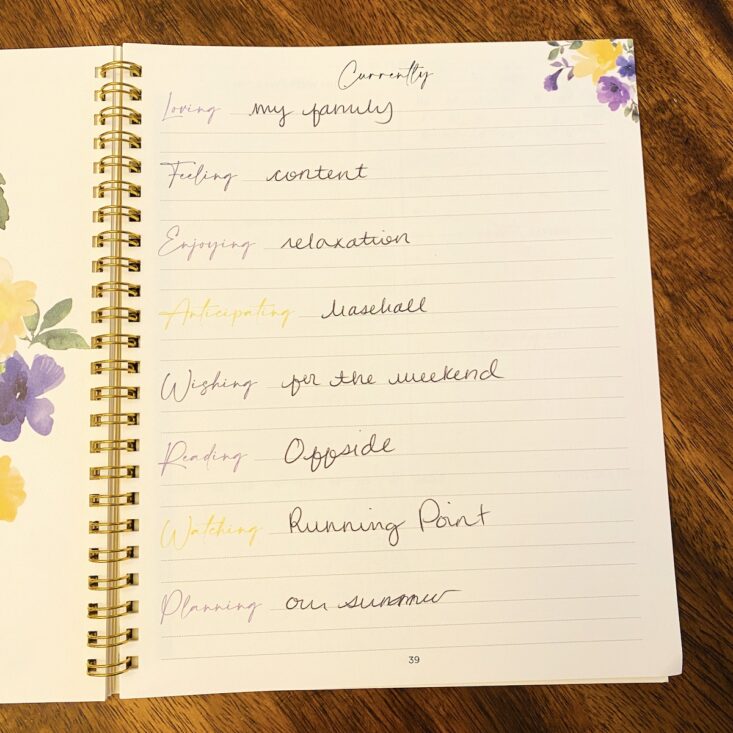 I typically tend to allocate about 15-20 minutes a day to this journal and flip from front to back reflecting, adding to, and processing what I have previously written. By the end of the month, my brain feels much more organized and stable. The beauty of this planner is remarkable, and the packable size means I can tote it around in my purse. Being extremely impressed with all aspects, I am really looking forward to discovering more about myself, all while staying organized and offering myself a little daily quiet time and important self-care.