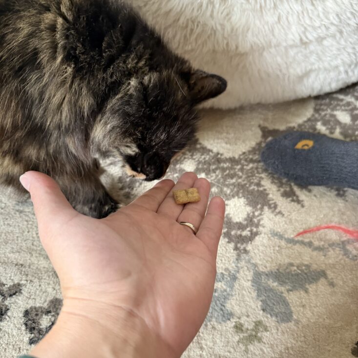 This month, I also received the treat option. The bag contained a generous 3 ounces and was packed full—Miley really appreciated the addition! Square-shaped with a soft tuna-flavored center, she gobbled these treats up in no time and was soon begging for more.