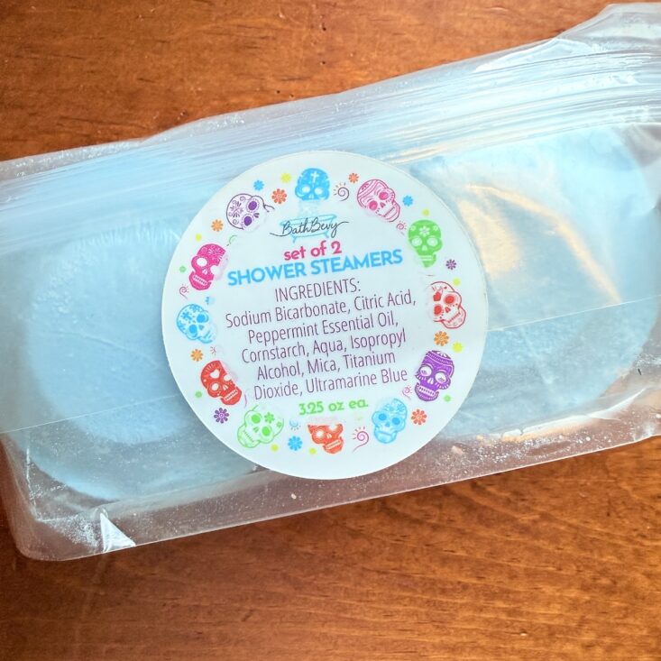As much as I adore a long, hot soak in the tub, life in a one-bathroom house means we sometimes have to settle for quick showers if we all want a shot at warm water. To bring a little spa magic to those speedy rinses, this month’s box included a set of two “Wake the Dead” shower steamers. And let me tell you—these are minty with a capital M! Charlie volunteered to test one out and reported back that it was amazing… but almost strong enough to clear his brain right through his nostrils. 😅 Perfect for opening up the sinuses, we’re saving the second steamer for when cold and flu season inevitably rolls through—it’ll be our secret weapon for a little steamy, minty relief!