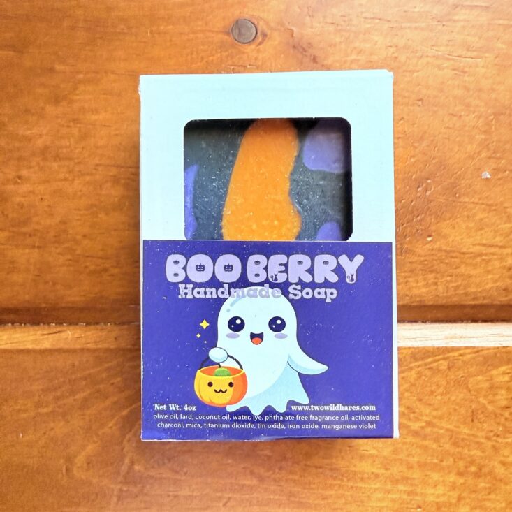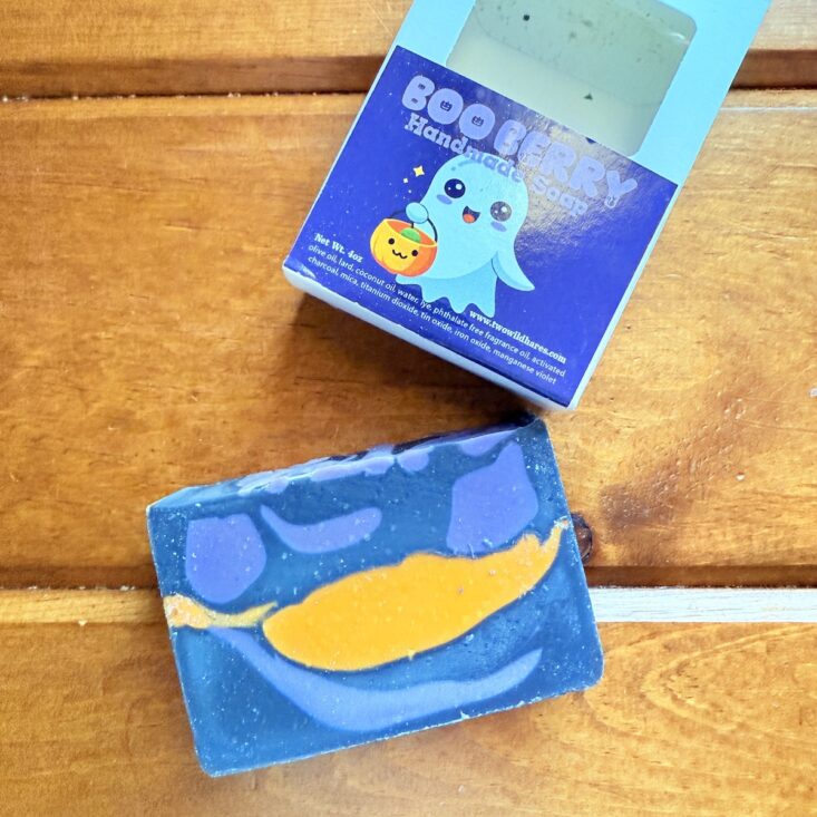 I love, love, love homemade soap, and the Tubless box always does a great job of delivering a new bar each month. This month’s version, called “Boo Berry,” fits perfectly with the “Sweet and Spooky” theme and even features an adorable candy-basket-carrying ghost on the box! With swirls of purple and orange running through the black bar, this sweet-smelling soap is perfect for the upcoming holiday season. Made with ingredients like olive oil, lard, coconut oil, water, lye, phthalate-free fragrance oil, activated charcoal, mica, titanium dioxide, tin oxide, iron oxide, and manganese violet, this homemade soap is something I feel great about using—and that ultra-sweet scent is hard to resist!