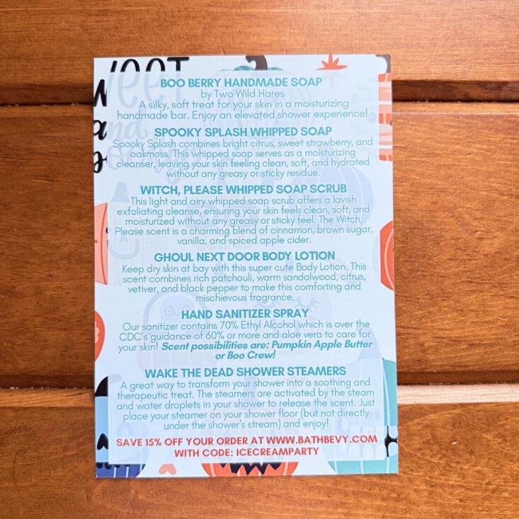 The last item we received was a bottle of “Ghoul Next Door” body lotion. This lotion features notes of patchouli, sandalwood, citrus, vetiver, and black pepper. With its earthy, warm scent, it’s a little strong—but in the best way. I always enjoy these lotions, and this one was both hydrating and fun to wear. A perfect nod to the upcoming holiday, it’s already helping my dry hands look and feel so much better!