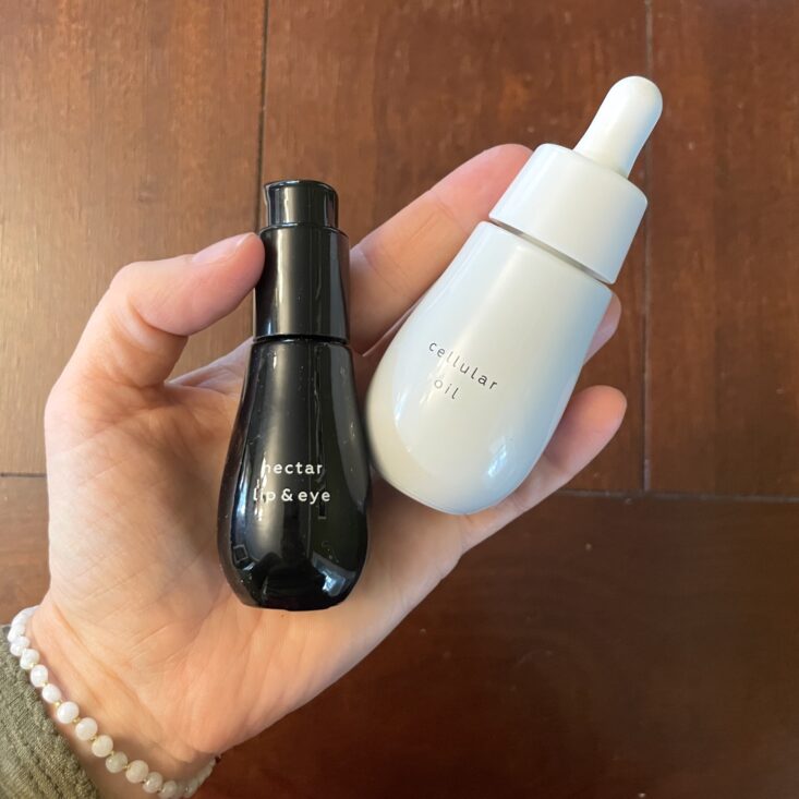 This product has a whisper of orange blossom scent to it, that I truthfully wasn't sure I loved at first. Even despite it, I reached for this nectar a good few times before trying the serum it came with, because it feels so good on my lips and face, and it seemed to serve a purpose that nothing else on my bathroom counter currently covers. I've come to really enjoy this step, and paired with the skin revival serum it came with, the scent really grew on me.