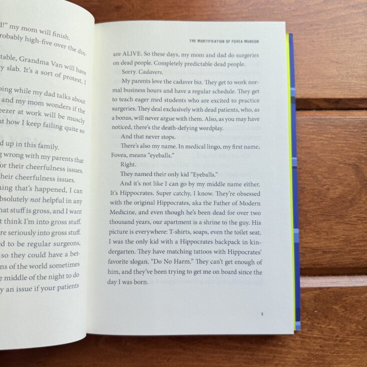 Fovea Munson is nobody's Igor. True, her parents own a cadaver lab where they perform surgeries on dead bodies. And yes, that makes her gross by association, at least according to everyone in seventh grade. And sure, Fovea's stuck working at the lab now that her summer camp plans have fallen through. But she is by no means Dr. Frankenstein's snuffling assistant! That is, until three disembodied heads, left to thaw in the wet lab, start talking. To her. Out loud. And they need a favor.