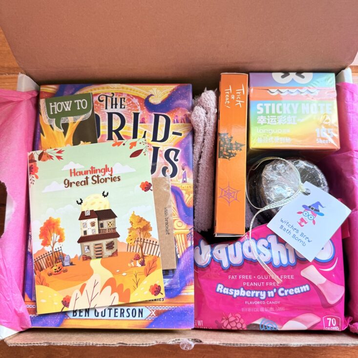 beTWEEN the Bookends is one of our favorite subscription boxes of all time. This month's box theme featured some useful items that Hank and I really enjoyed. Like I mentioned above, this is the full-sized box which is aimed towards girls, but fits an educator-son duo just fine. The included lifestyle items were a great mix of fun and functional all fitting the "Hauntingly Great Stories" theme extremely well. Overall we thought this box was curated nicely and loved the useful items, especially the bath bomb, bracelet, socks, candy, erasers, and stick notes. We already can't wait to see what's in store for November!