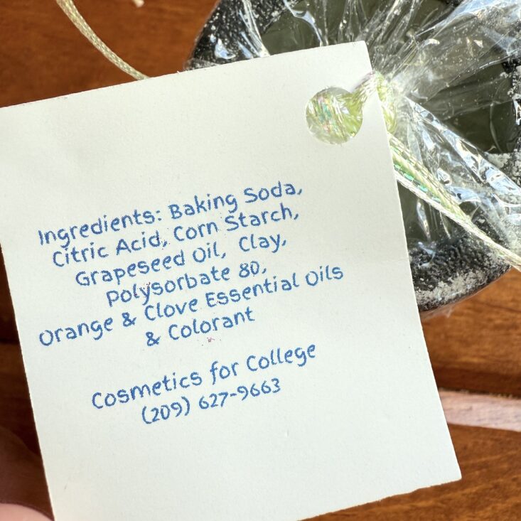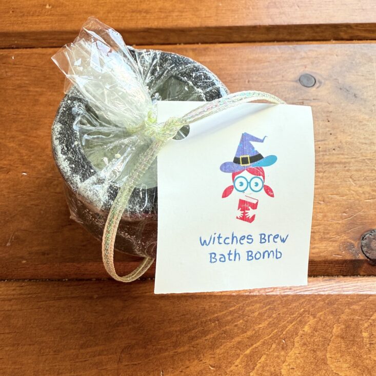 The first item we received this month was definitely a favorite. Back in the 2022 Halloween box, we received this very same bath bomb cauldron, and Hank had his fingers crossed that it might make a return. Made from baking soda, citric acid, cornstarch, grapeseed oil, clay, polysorbate 80, orange and clove essential oils, and colorant, this bath bomb is both cute and fun. The orange and clove scent is perfect for the cooler days of fall, and Hank loved watching the powder bubble up in the tub. A great inclusion—this box is already shaping up to be top-notch!