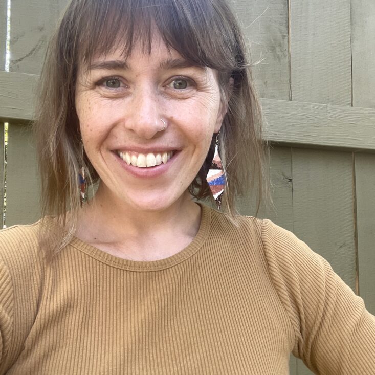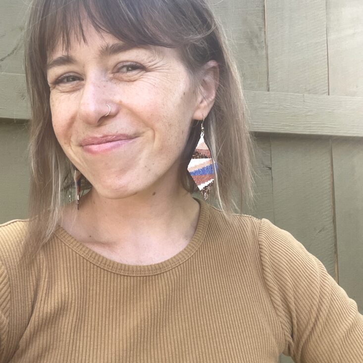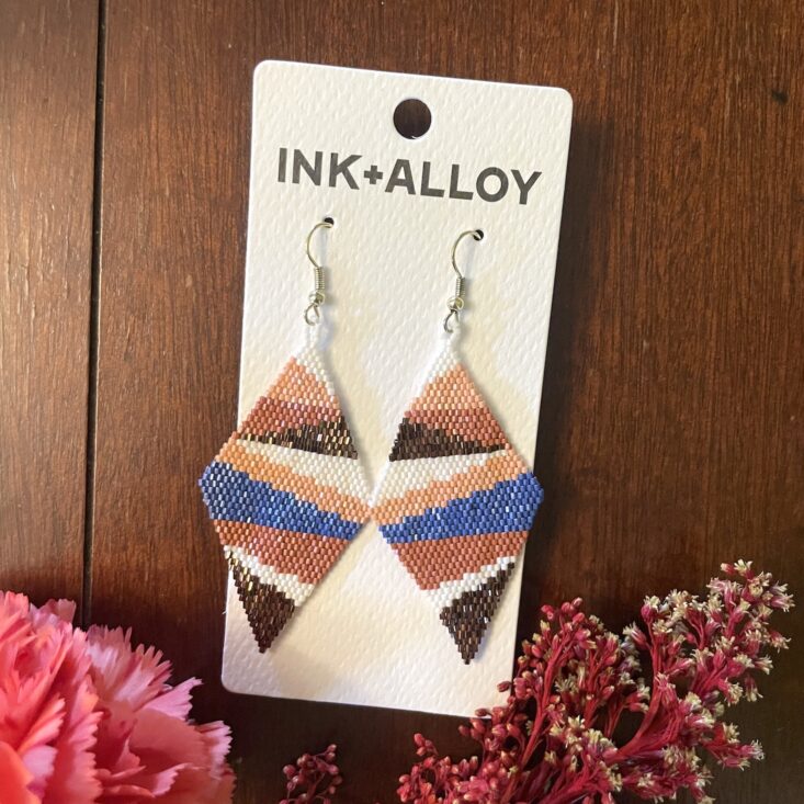 Every pair of earrings that arrives through my INK+ALLOY subscription is always scrutinized through the lens of the season we're in. It's hard to help! I think if this pair were to have arrived in the heat of summer, they would have felt very desert-y, but here in autumn, the richer colors are standing out to me—the rust, the chocolate brown, and the eye-catching pop of cobalt blue. I wear a ton of olive green, and these hues fit into that earthy palette perfectly without being too matchy.